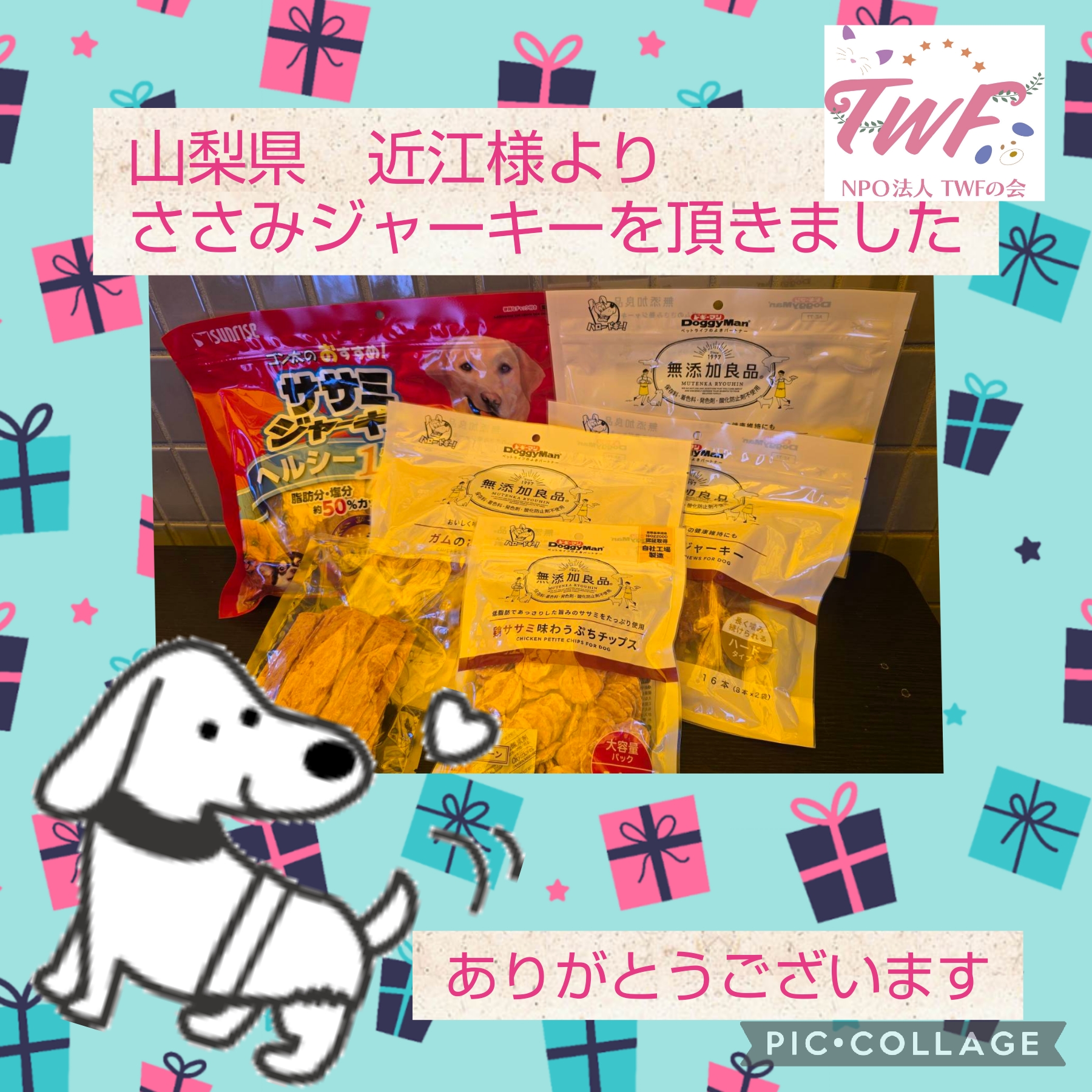 山梨県の近江様より、ささみジャーキーをご寄付頂きました。ありがとうございます!!