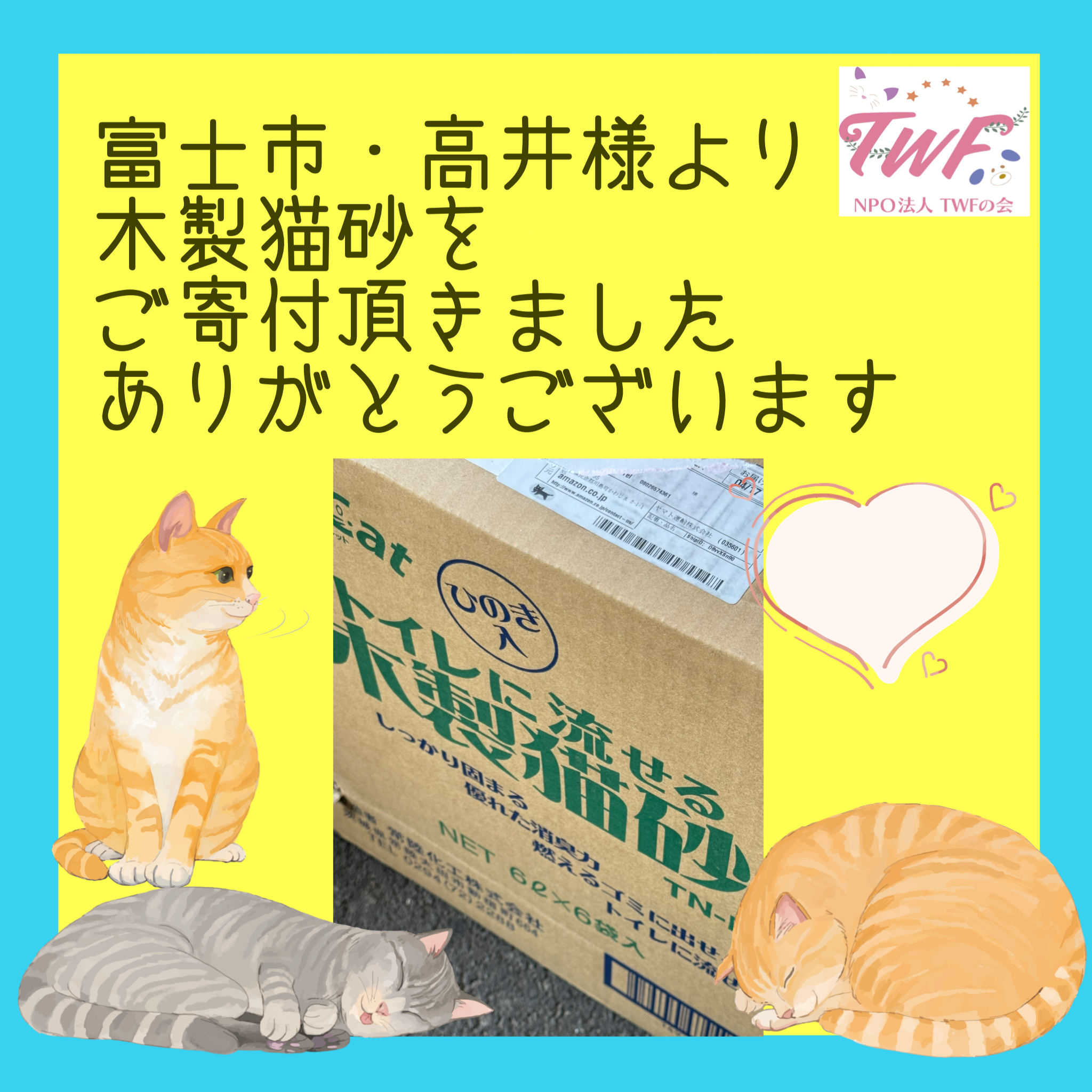 木製猫砂をご寄付頂きました。 2025 4/17 INFORMATION Thanks! 2025年4月17日 富士市・高井様より木製猫砂をご寄付頂きました。ありがとうございます。 INFORMATION Thanks! よかったらシェアしてね! URLをコピーしました! 猫砂 55袋をご寄付頂きました。 わんわんカロリーシニア 6箱 ご寄付頂きました。 おすすめ記事 品物のご寄付を頂きました 2026年2月7日 品物のご寄付を頂きました 2026年2月6日 大切なお知らせ 2026年2月6日 ご寄付を頂きました✨ 2026年1月28日 ご寄付を頂きました 2026年1月26日 品物のご寄付いただきました✨ 2026年1月25日 オレンジX、ごみ袋をご寄付頂きました 2026年1月24日 品物のご寄付を頂きました。 2026年1月20日