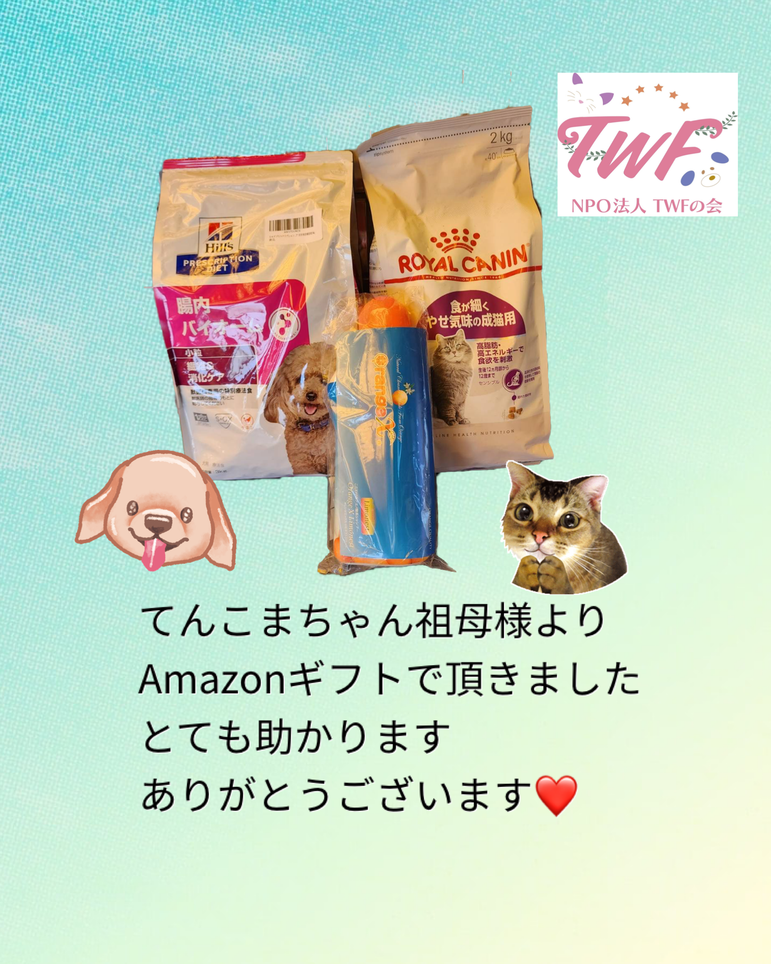Amazonギフトで頂きました 2025 8/01 INFORMATION Thanks! 2025年7月29日2025年8月1日 Amazonギフトより、ドックフード、キャットフード、オレンジエックスをご寄付頂きました。てんこまちゃん祖母様、温かいご支援、お心遣い、誠にありがとうございます。 INFORMATION Thanks! よかったらシェアしてね! URLをコピーしました! ドッグフードと猫砂をご寄付頂きました ご寄付を頂きました。 おすすめ記事 品物のご寄付を頂きました 2026年2月7日 品物のご寄付を頂きました 2026年2月6日 大切なお知らせ 2026年2月6日 ご寄付を頂きました✨ 2026年1月28日 ご寄付を頂きました 2026年1月26日 品物のご寄付いただきました✨ 2026年1月25日 オレンジX、ごみ袋をご寄付頂きました 2026年1月24日 品物のご寄付を頂きました。 2026年1月20日