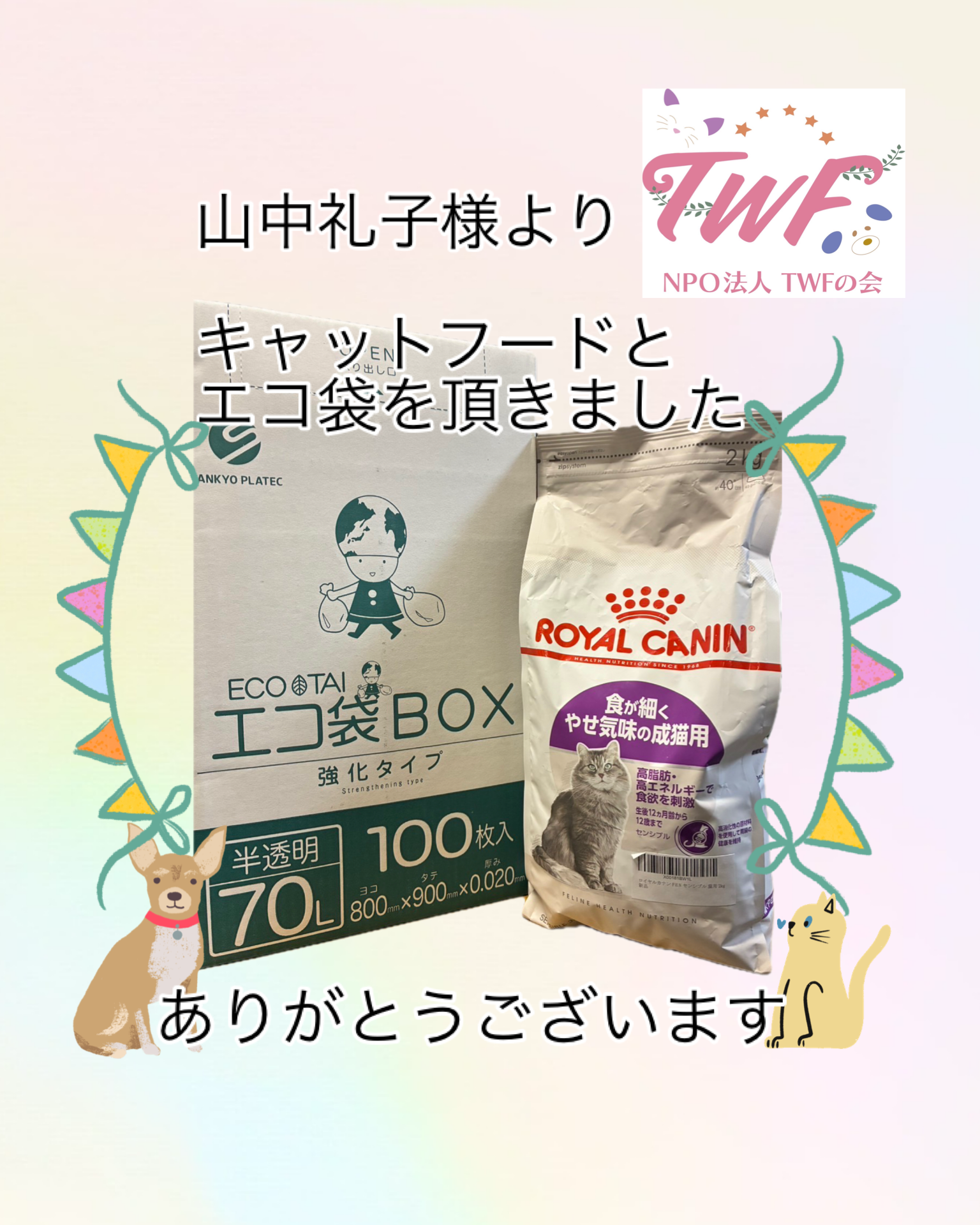 キャットフードなどご寄付頂きました。 2025 8/11 INFORMATION Thanks! 2025年8月11日 山中礼子様よりキャットフードとエコ袋を寄付して頂きました。山中様、ありがとうございます✨ INFORMATION Thanks! よかったらシェアしてね! URLをコピーしました! 猫ちゃんのご飯をご寄付して頂きました 成猫ちゃん用のご飯をご寄付頂きました。 おすすめ記事 猫砂のご寄付を頂きました 2026年2月7日 品物のご寄付を頂きました 2026年2月7日 品物のご寄付を頂きました 2026年2月6日 大切なお知らせ 2026年2月6日 ご寄付を頂きました✨ 2026年1月28日 ご寄付を頂きました 2026年1月26日 品物のご寄付いただきました✨ 2026年1月25日 オレンジX、ごみ袋をご寄付頂きました 2026年1月24日