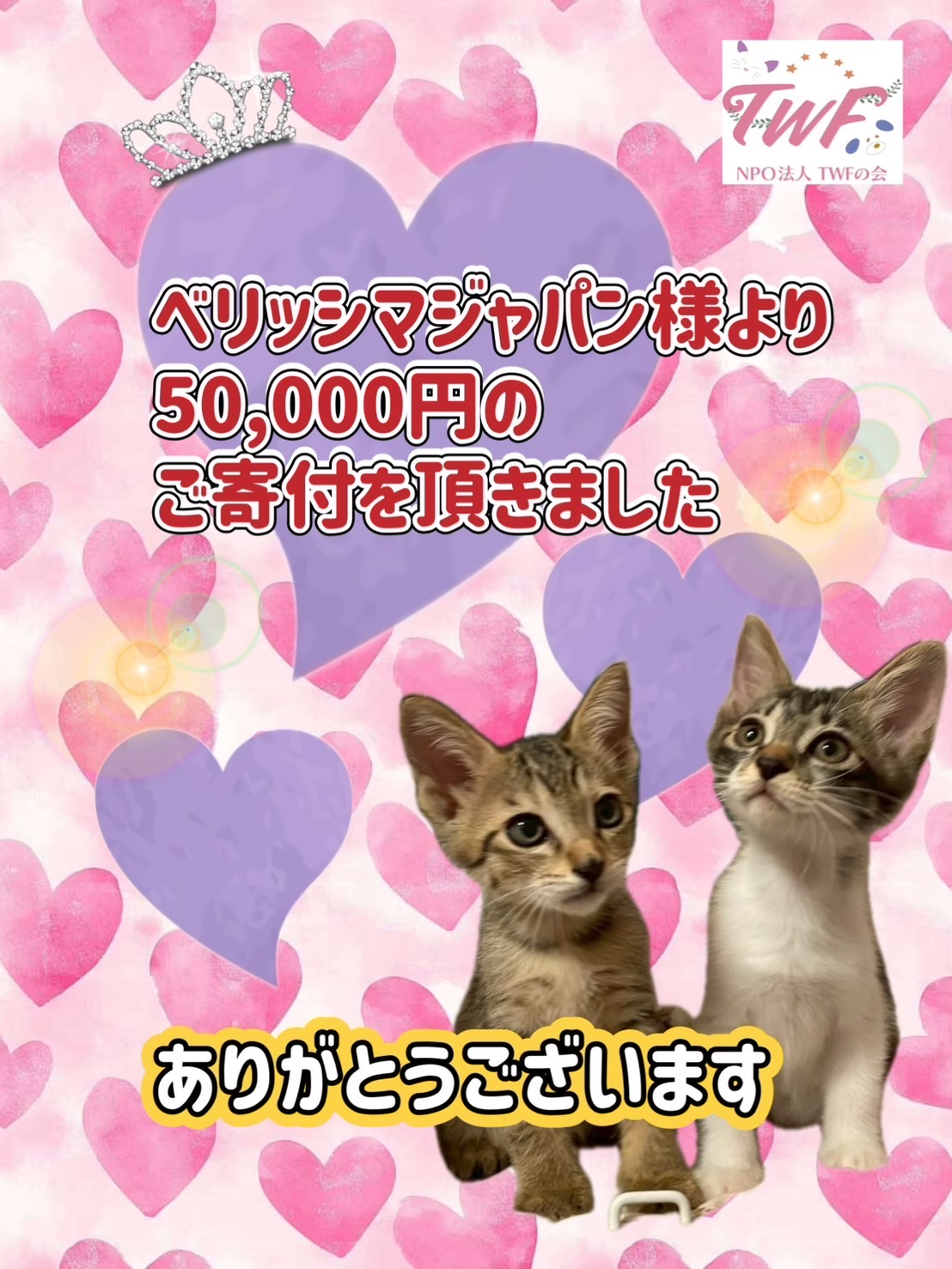 ベリッシマジャパン様より50000円のご寄付を頂きました。ありがとうございます。