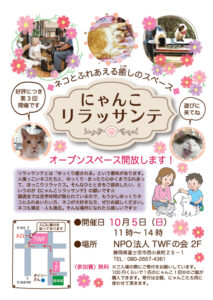 猫のおもちゃをご寄付いただきました 2025 9/07 INFORMATION Thanks! 2025年9月7日 当会の子猫ちゃん達、早速集まって遊んでいます✨ありがとうございます✨ INFORMATION Thanks! Thanks! よかったらシェアしてね! URLをコピーしました! 第3回にゃんこリラッサンテを10月5日(日)に開催致します ご寄付を頂きました おすすめ記事 品物のご寄付を頂きました 2026年2月7日 品物のご寄付を頂きました 2026年2月6日 大切なお知らせ 2026年2月6日 ご寄付を頂きました✨ 2026年1月28日 ご寄付を頂きました 2026年1月26日 品物のご寄付いただきました✨ 2026年1月25日 オレンジX、ごみ袋をご寄付頂きました 2026年1月24日 品物のご寄付を頂きました。 2026年1月20日