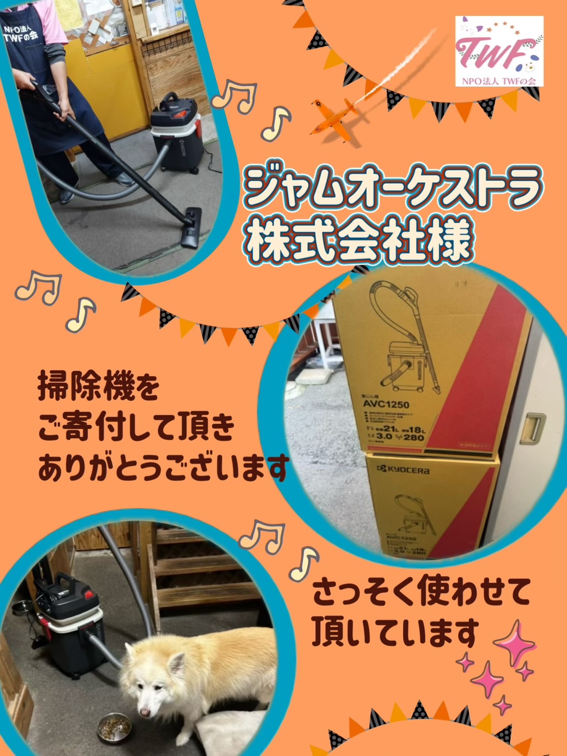 ジャムオーケストラ株式会社様より掃除機をご寄付頂きました。早速、使わせて頂いています。