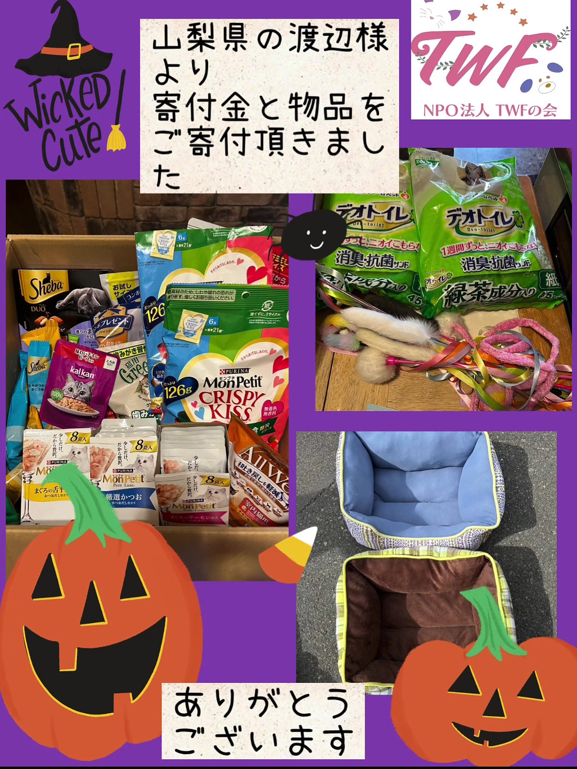 寄付金と物品のご寄付 2025 10/13 INFORMATION Thanks! 2025年10月13日 山梨県の渡辺様より寄付金と物品をご寄付頂きました。ありがとうございます。 INFORMATION Thanks! よかったらシェアしてね! URLをコピーしました! 猫用三段ケージ、チュール、フードをご寄付頂きました 募金箱の募金をご寄付頂きました おすすめ記事 品物のご寄付を頂きました 2026年2月7日 品物のご寄付を頂きました 2026年2月6日 大切なお知らせ 2026年2月6日 ご寄付を頂きました✨ 2026年1月28日 ご寄付を頂きました 2026年1月26日 品物のご寄付いただきました✨ 2026年1月25日 オレンジX、ごみ袋をご寄付頂きました 2026年1月24日 品物のご寄付を頂きました。 2026年1月20日