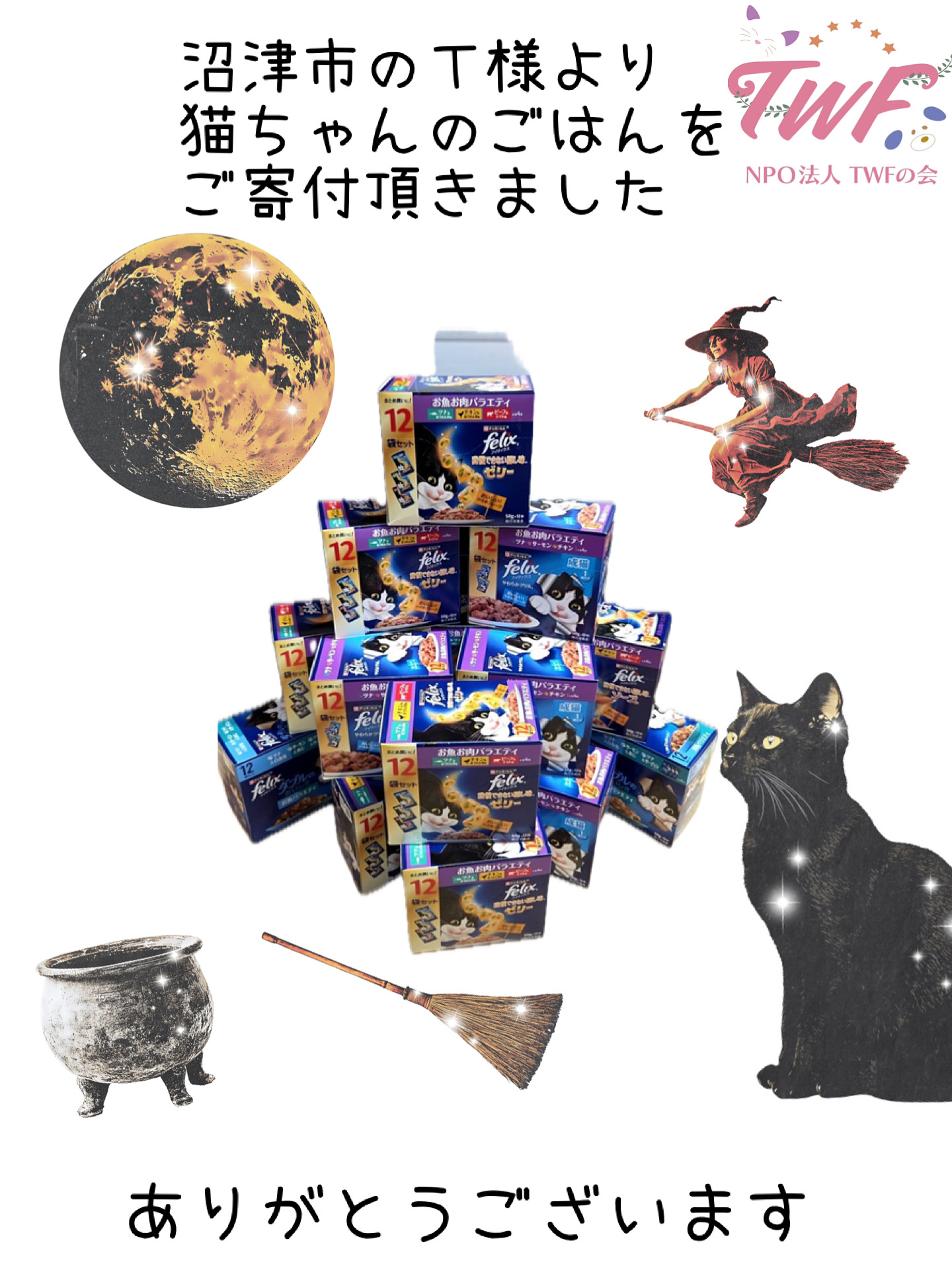 沼津市のT様より、猫ちゃんのごはんをご寄付頂きました。いつもありがとうございます。