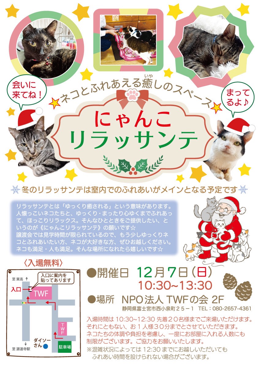今回は、『⛄️冬のリラッサンテ』として室内での猫ちゃんのふれあいをがメインになる予定です。