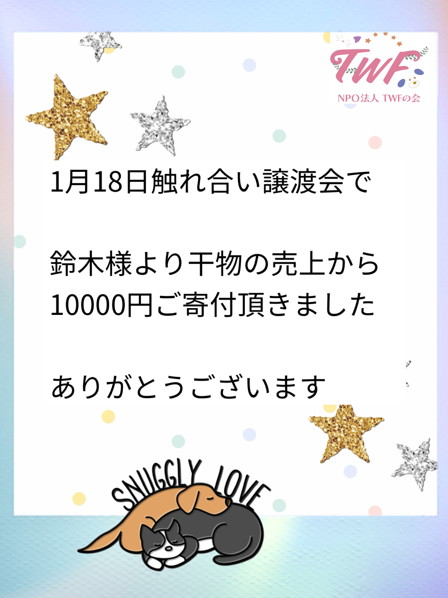 ご寄付を頂きました 2026 1/18 INFORMATION Thanks! 2026年1月18日 1月18日触れ合い譲渡会での干物の売り上げより10000円ご寄付頂きました。ありがとうございます。 INFORMATION Thanks! よかったらシェアしてね! URLをコピーしました! ご寄付を頂きました 品物のご寄付を頂きました おすすめ記事 品物のご寄付を頂きました 2026年2月6日 大切なお知らせ 2026年2月6日 ご寄付を頂きました✨ 2026年1月28日 ご寄付を頂きました 2026年1月26日 品物のご寄付いただきました✨ 2026年1月25日 オレンジX、ごみ袋をご寄付頂きました 2026年1月24日 品物のご寄付を頂きました。 2026年1月20日 キャットフードやタオルなどご寄付頂きました 2026年1月19日