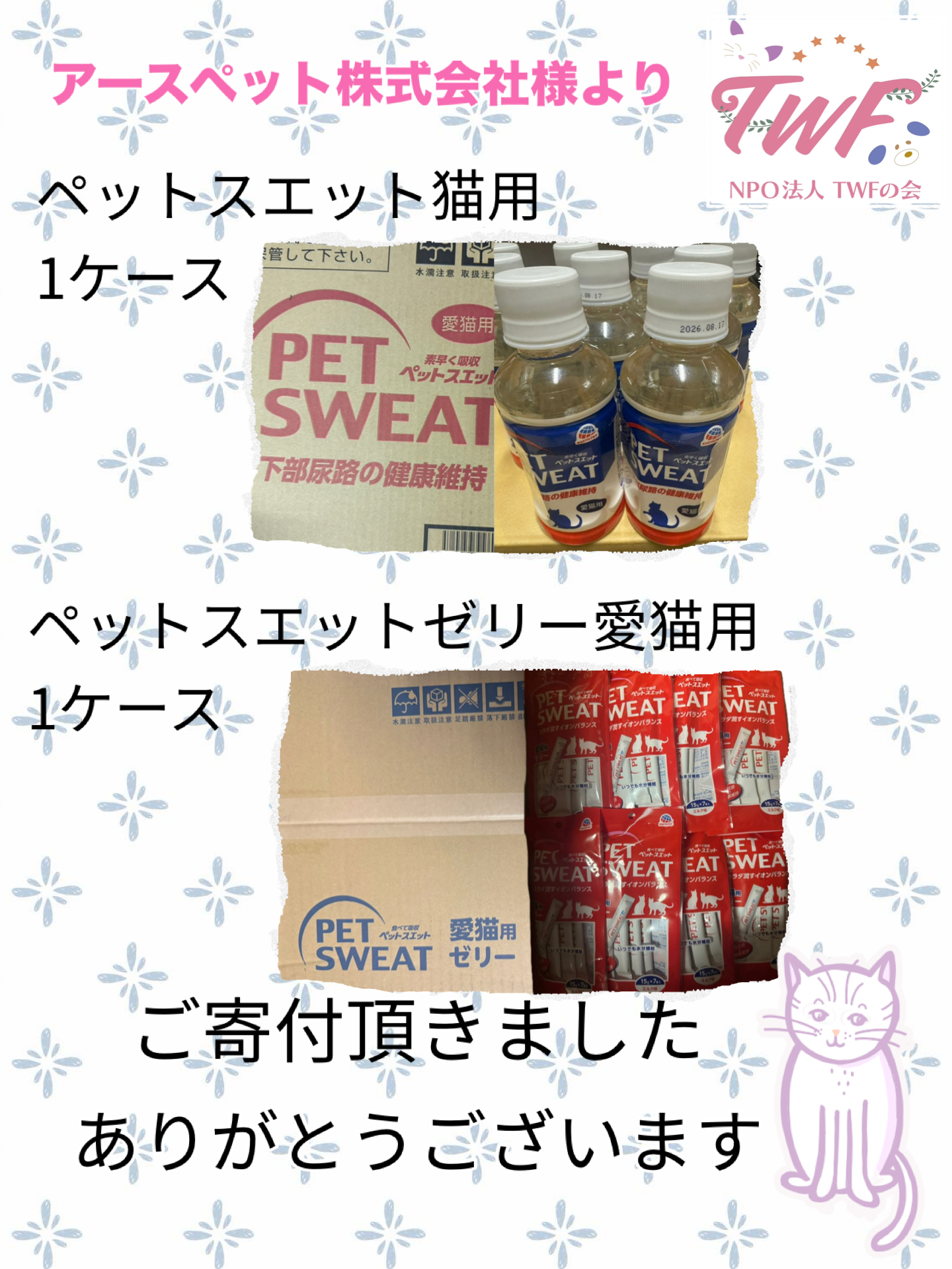 品物のご寄付を頂きました 2026 2/06 INFORMATION Thanks! 2026年2月6日 アースペット株式会社様より、ペットスエット猫用1ケース、ペットスエットゼリー愛猫用1ケースご寄付頂きました。ありがとうございます。 INFORMATION Thanks! よかったらシェアしてね! URLをコピーしました! 大切なお知らせ おすすめ記事 大切なお知らせ 2026年2月6日 ご寄付を頂きました✨ 2026年1月28日 ご寄付を頂きました 2026年1月26日 品物のご寄付いただきました✨ 2026年1月25日 オレンジX、ごみ袋をご寄付頂きました 2026年1月24日 品物のご寄付を頂きました。 2026年1月20日 キャットフードやタオルなどご寄付頂きました 2026年1月19日 フードやブランケットなどご寄付頂きました 2026年1月18日