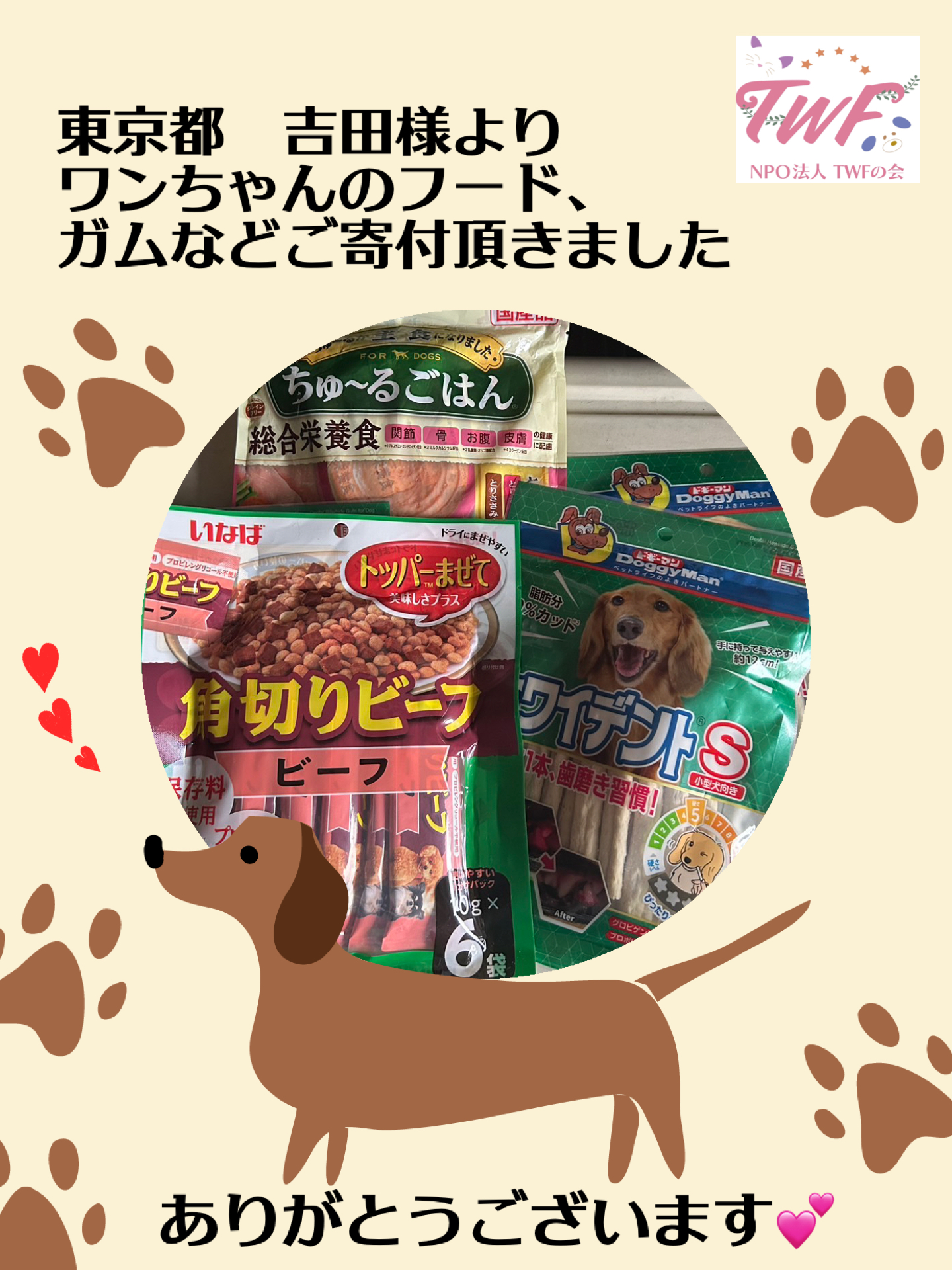 ワンちゃんのフード、ガムなどご寄付頂きました 2026 2/20 INFORMATION Thanks! 2026年2月20日 当会のワンちゃん達も喜びます✨ご支援をありがとうございます✨ INFORMATION Thanks! Thanks! よかったらシェアしてね! URLをコピーしました! ご寄付を頂きました おすすめ記事 ご寄付を頂きました 2026年2月15日 品物のご寄付を頂きました✨ 2026年2月11日 猫ちゃんのオヤツをご寄付頂きました 2026年2月11日 品物のご寄付を頂きました 2026年2月11日 猫砂のご寄付を頂きました 2026年2月7日 品物のご寄付を頂きました 2026年2月7日 品物のご寄付を頂きました 2026年2月6日 大切なお知らせ 2026年2月6日