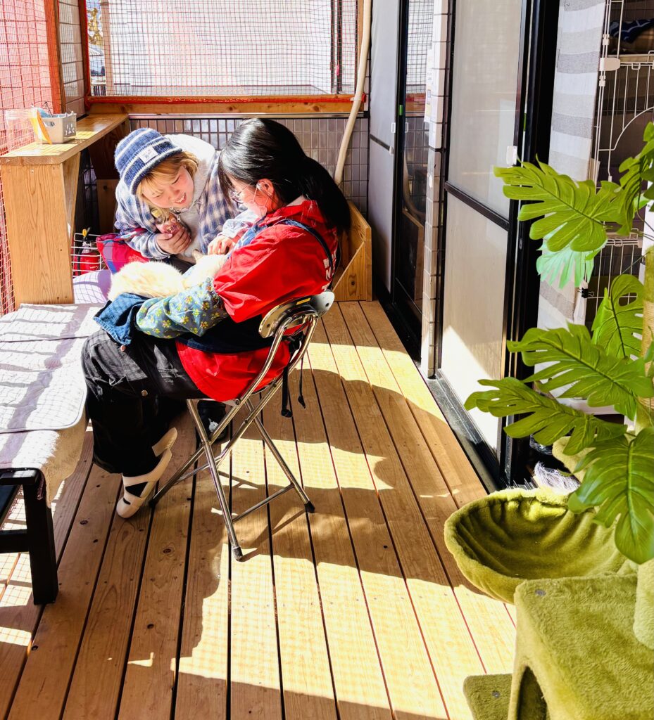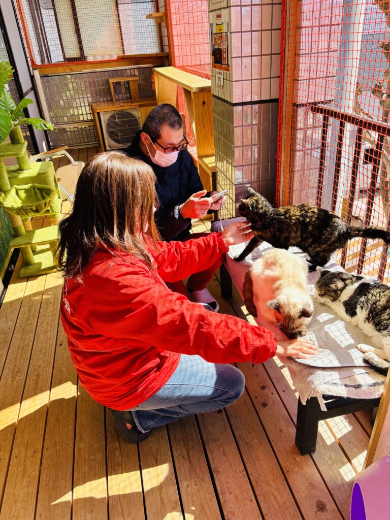 仲良くて、ゲージから出られる様な環境になっていて、日光浴もでき保護された猫ちゃん達も幸せそうでした。