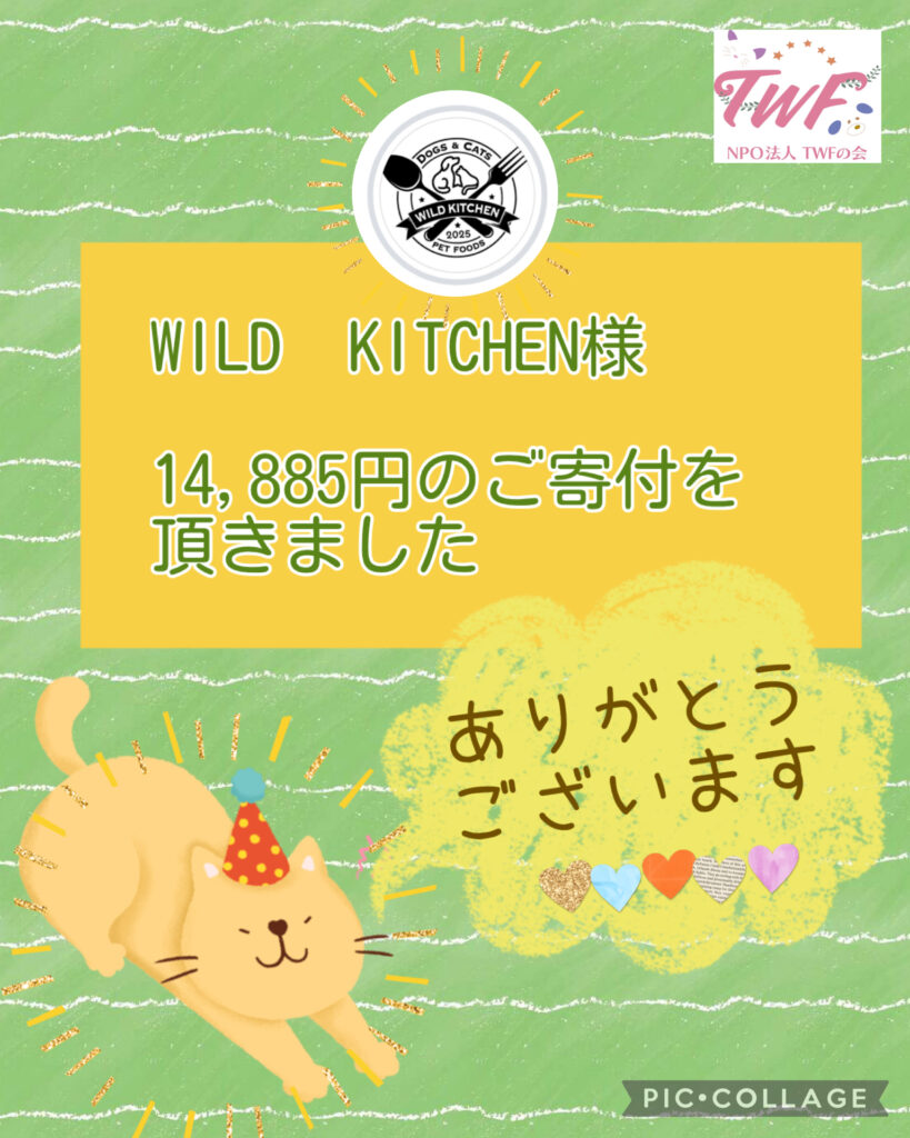 ワイルドキッチン様より、14,885円のご寄付を頂きました。温かいご支援ありがとう... -