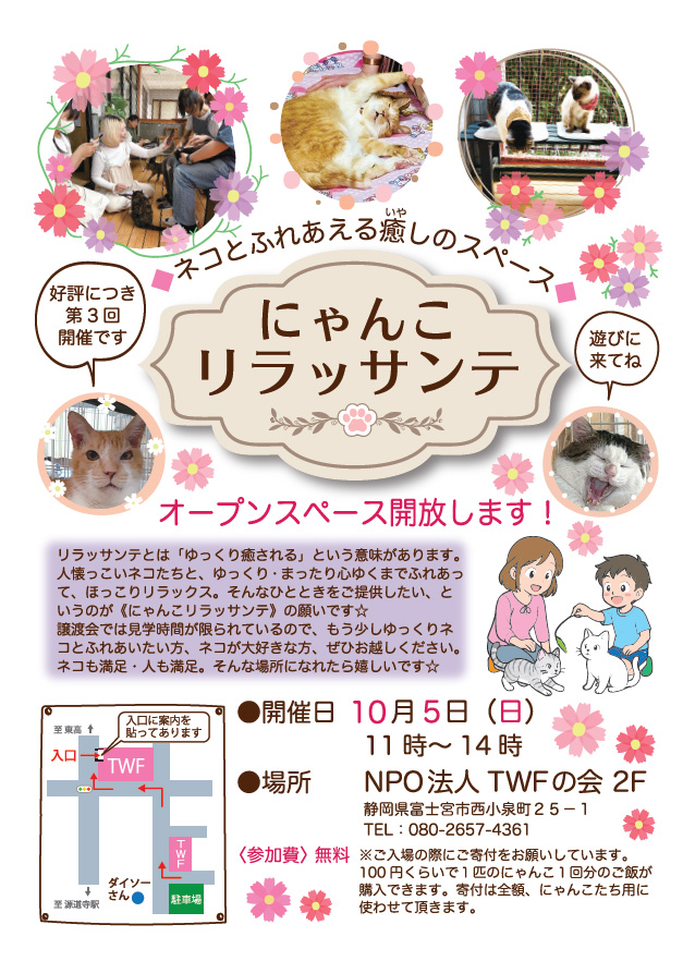 10月5日(日)、第3回にゃんこリラッサンテを開催致しました。 お陰様で私達スタッフ... -