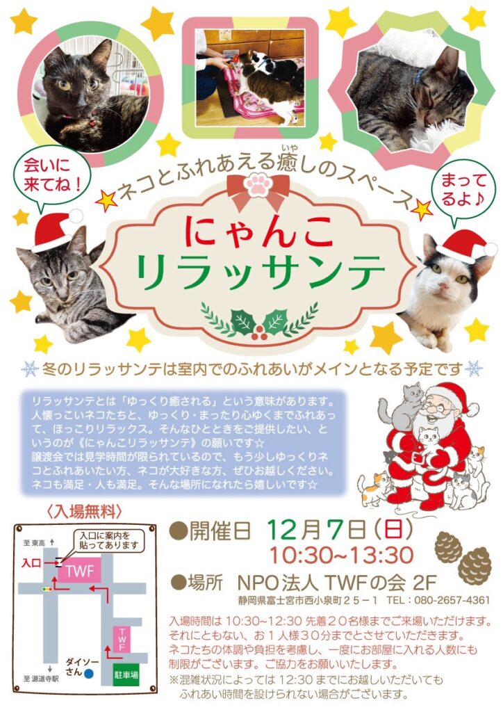 12月7日(日)第4回にゃんこリラッサンテを開催致しました。今回は「⛄️冬のリラッサ... -
