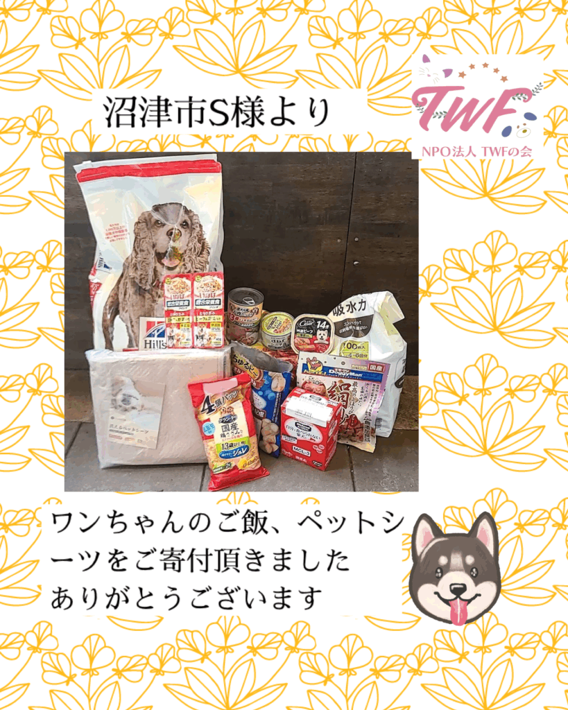 沼津市S様より、ワンちゃんのご飯ペットシーツを頂きました。ありがとうございます。 -